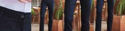 Women's classic fit chinos in a soft fabric finish. Zip fly with button fastening at waist. Belt loops. Two swing pockets to the side and two non-functional back jetted pockets for styling. Product contains no branded neck label. Removable Kimble or looped garment tags. Inner seam label holds important product information on one label with a second label containing brand information which can be cut-away. Please note old stock may contain a fixed branded label.